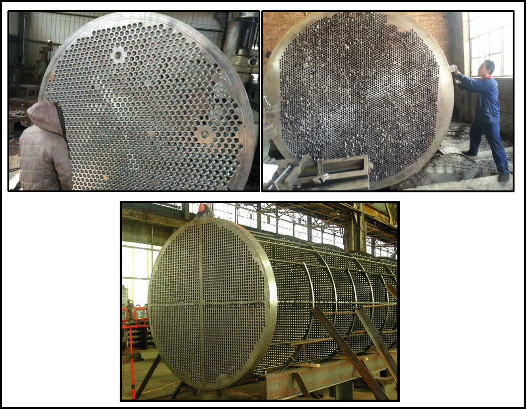 在管板的測量過程中,主要測查指標是管孔的位置偏差,孔徑偏差,孔內(nèi)光潔度,有無毛刺,摳槽位置等等,對于板,測量過程中更加注重管板的孔位,兩塊管板的孔位配合度是相當?shù)闹匾?。一般情況下用數(shù)控鉆床鉆孔即可保證孔位。